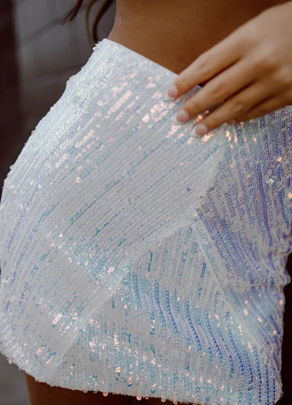 Our Ariel Sparkle Set is completed with a crop top and mini skirt.  The top in the set is a fully sequined bra style crop with a back hook and eye closure. The skirt in this set is fitted and features full sequin embellishment, high wasitline, and hidden back zipper closure. This set is fully lined and has stretch throughout.