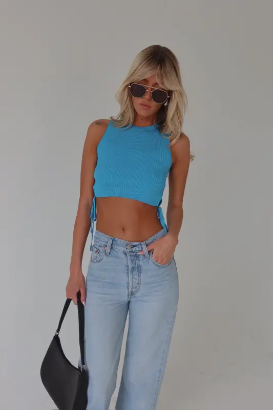 Carlee Side Tie Aqua Blue Top